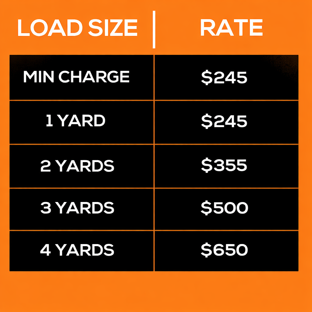 Heavy Load Rates include items such as bricks, concrete, dirt, rock, sod, pavers, roofing materials and mortar. Due to the heavy nature of these items, rates are priced according to 1-foot high in our trucks to ensure safety for the Dump-It crew during transportation. Our full truck can hold up to 4 yards of debris.